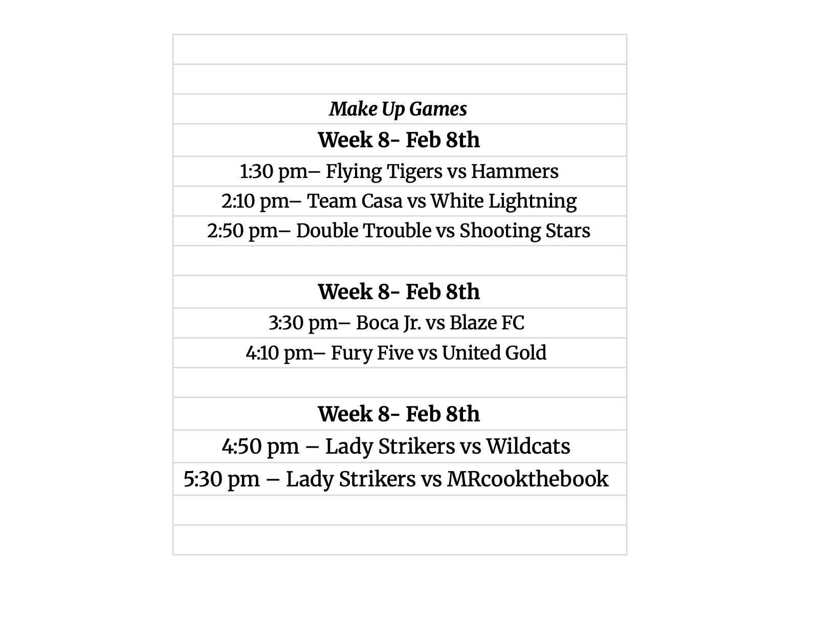 schedule below !!